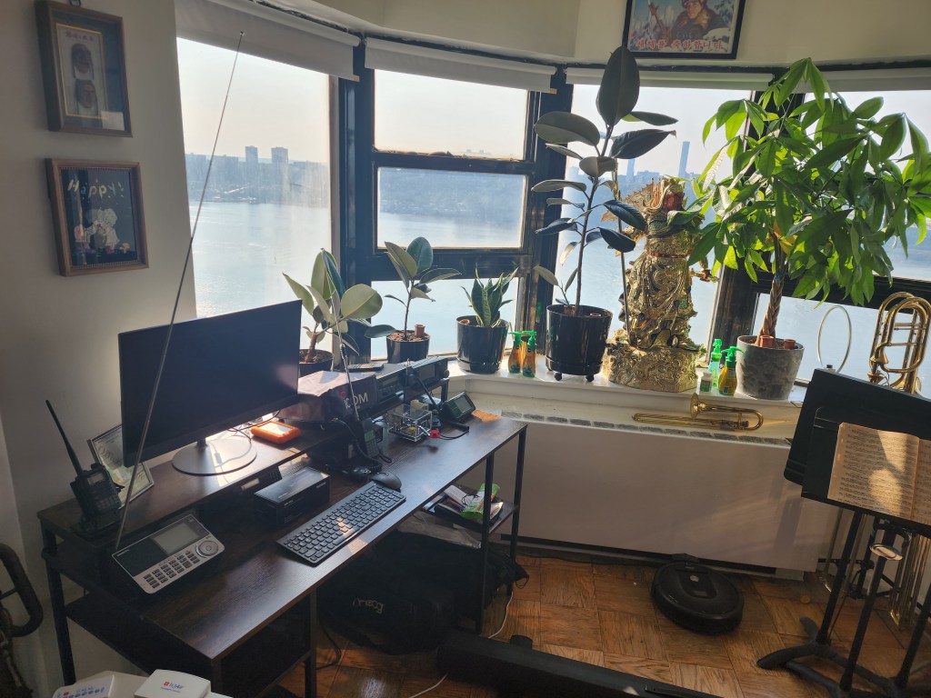 Shortwave Radio programming gradually waned in importance with the rise of the internet, so I gradually lost interestctual travel. But when the Covid pandemic hit in 2020, I found myself alone in a NYC apartment with nothing social to occupy myself, so I spent my evenings studying for my ham radio license – living in a NYC apartment may not be ideal for such endeavors, but I have a 24th floor river view, so it actually isn’t nearly as bad as I expected, and with the world in crisis, it seemed like a useful skill to have, and a way to reconnect with my favorite pastime as a kid. We couldn’t afford a transmitter back then, so I was just a passive listener, but I became quite good at designing homemade antennas and the like, so it seemed like the right time to go for it. After a month or so of studying I got my Amateur Extra license, giving me full access to the entire spectrum of broadcasting bands. I bought a couple nice transceivers (ICOM !C-7300, IC-905, and Yaesu FT-70D) to go with my various shortwave receivers and scanners, and it helped keep me sane during the lockdown.