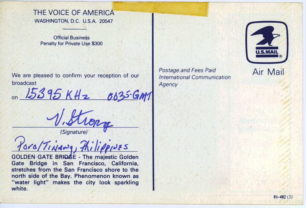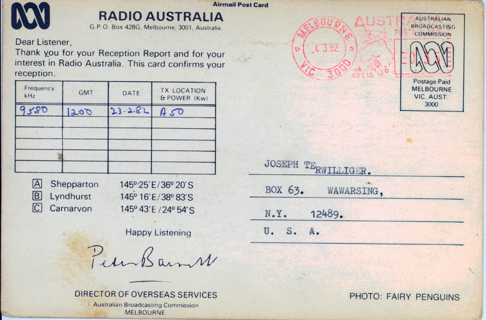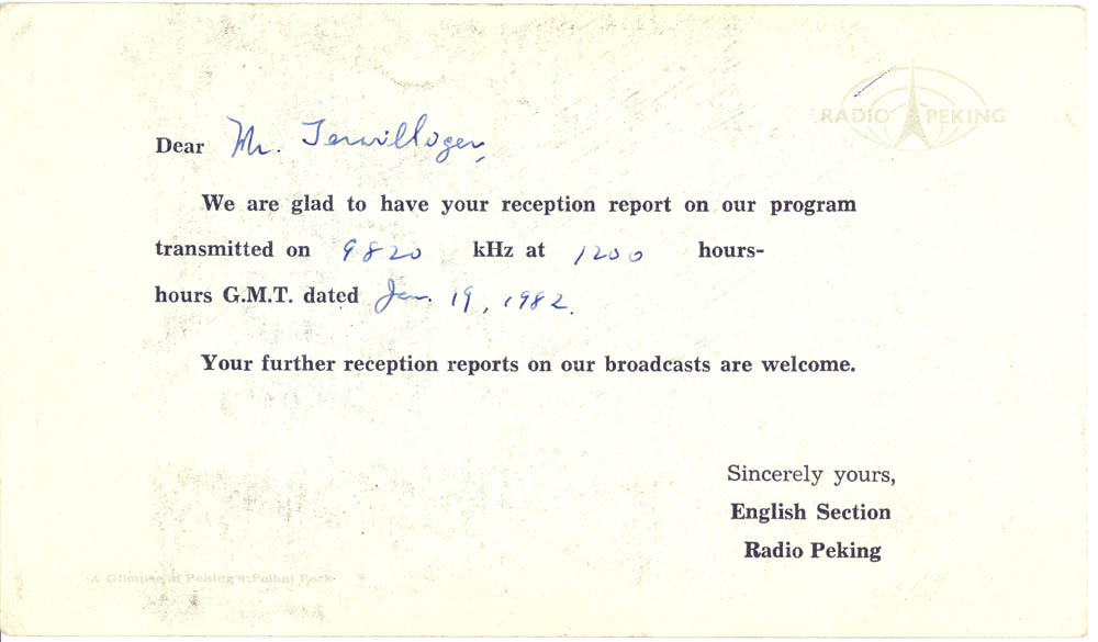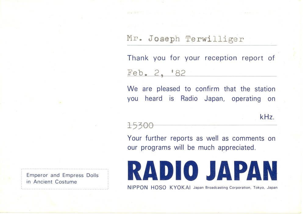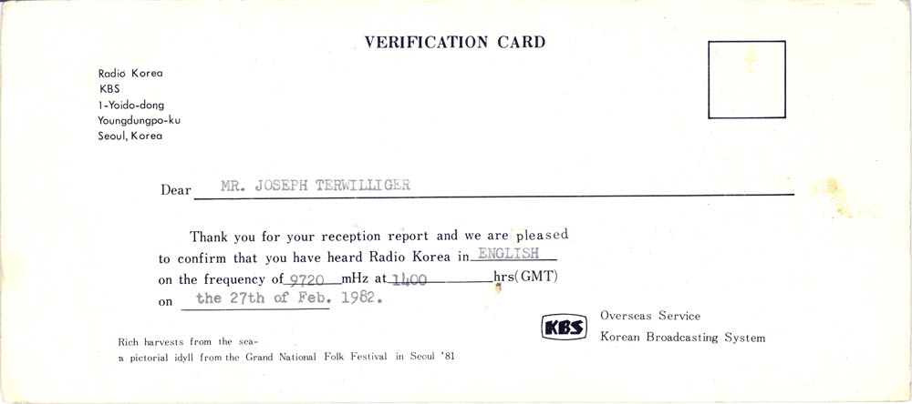 My father, who fought in World War II, was often shocked and scared when I would get envelopes in the mail from the USSR and other such places – having lived through the McCarthy era, but nevertheless, I managed to amass a lot of QSL cards verifying my reception of different international broadcast stations. I show them below, both for historical reference, as well as general interest and curiosity about the old days of SWL. Images from this set of QSL cards were used in an article in Popular Communications about the Voice of Vietnam in January 2010 (page 23)