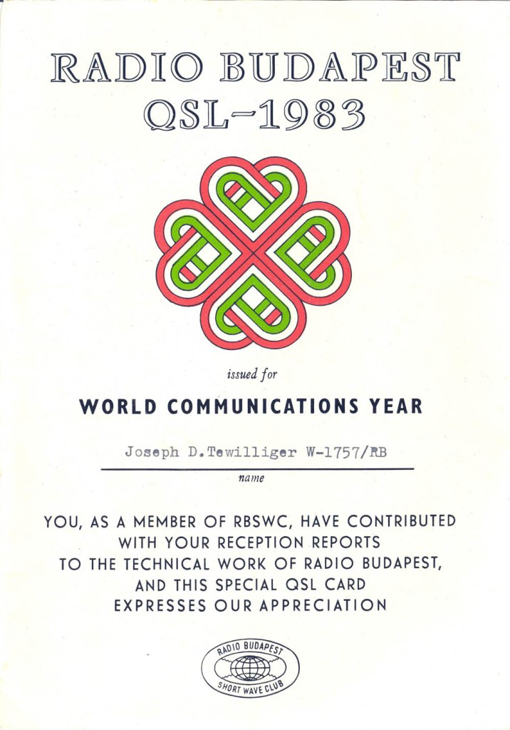 When I went to undergrad at the Peabody Conservatory of Music, I gradually lost interest in shortwave radio, mostly because I had terrible reception in the dormitory in central Baltimore – much different that being in the mountains in upstate New York… But I did write my term paper my freshman year on the World Administrative Radio Conference on High Frequency Radio Broadcasting in 1984, debating the future of shortwave broadcasting under the optimistic view that bands were becoming overcrowded… Of course today they are almost empty as internet put most of the shortwave broadcasters out of business, even Voice of America as of March 2025.