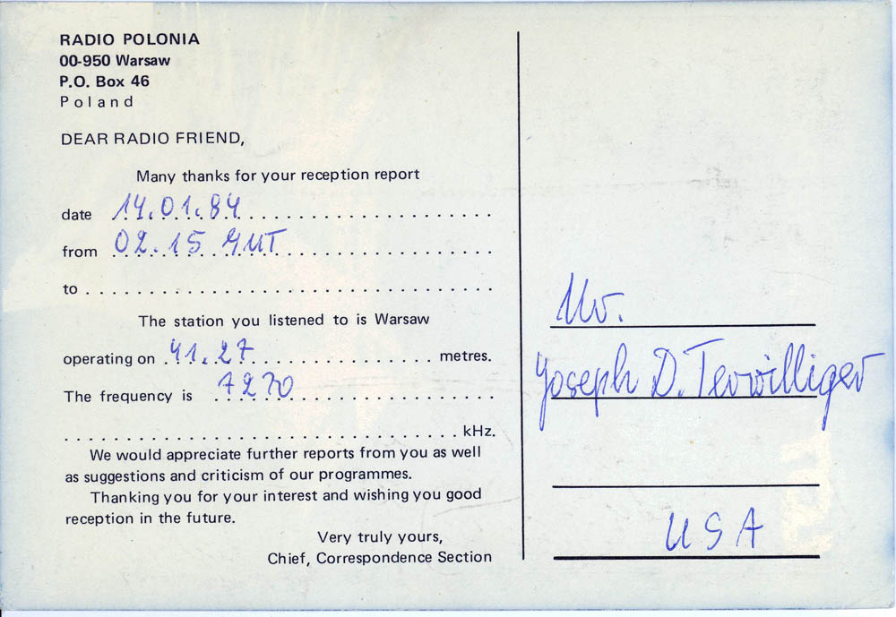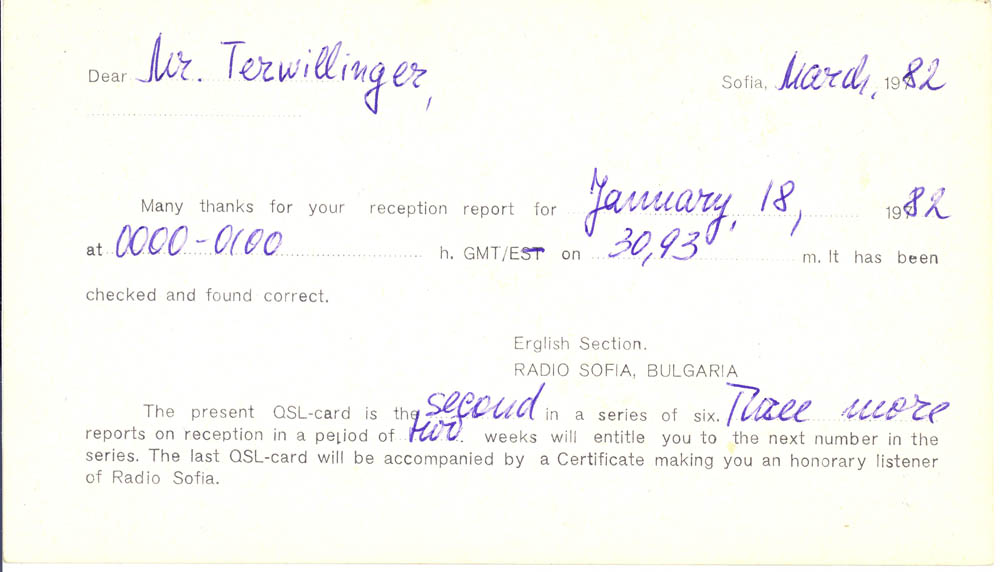 QSL CARDS FROM 1980s